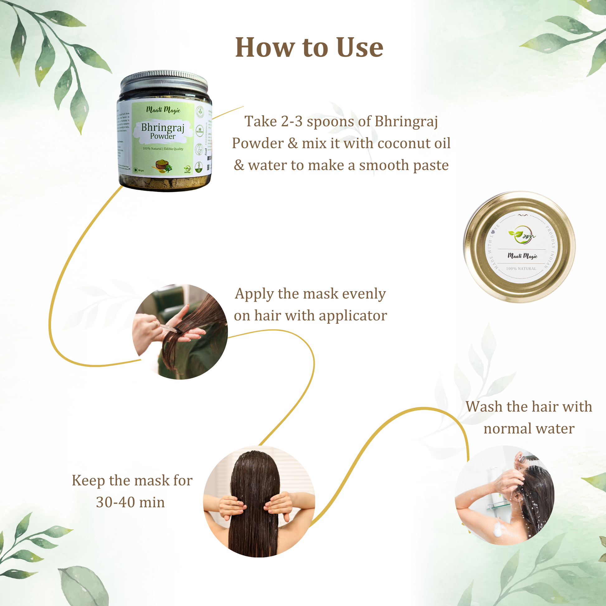 - 100% pure Bhringraj powder, free from additives and chemicals.